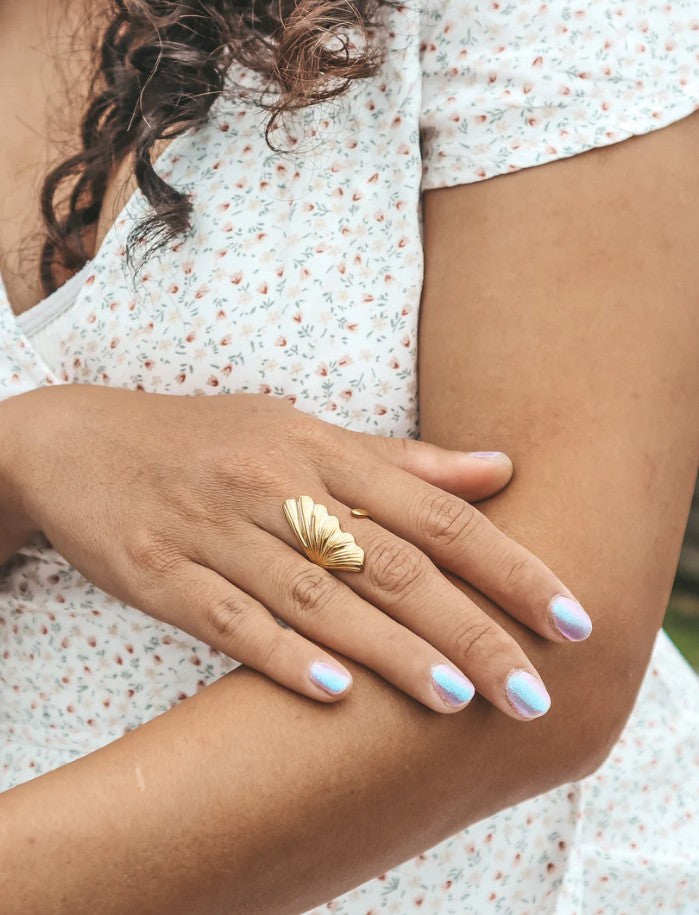Embrace refined coastal elegance with the Shell Open Cuff Gold Ring.