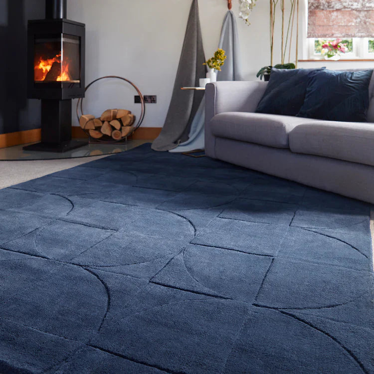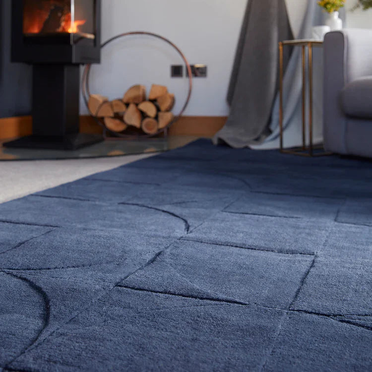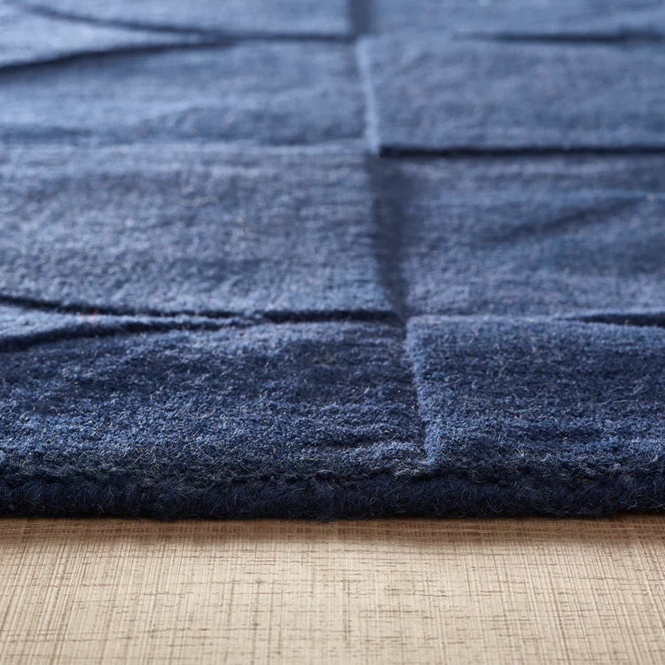 The Penny Rug is crafted from 100% pure wool and features a distinctive geometric design that is expertly carved to create a subtle 3D effect. This textured detailing adds depth and visual interest, giving the rug a refined yet contemporary character.