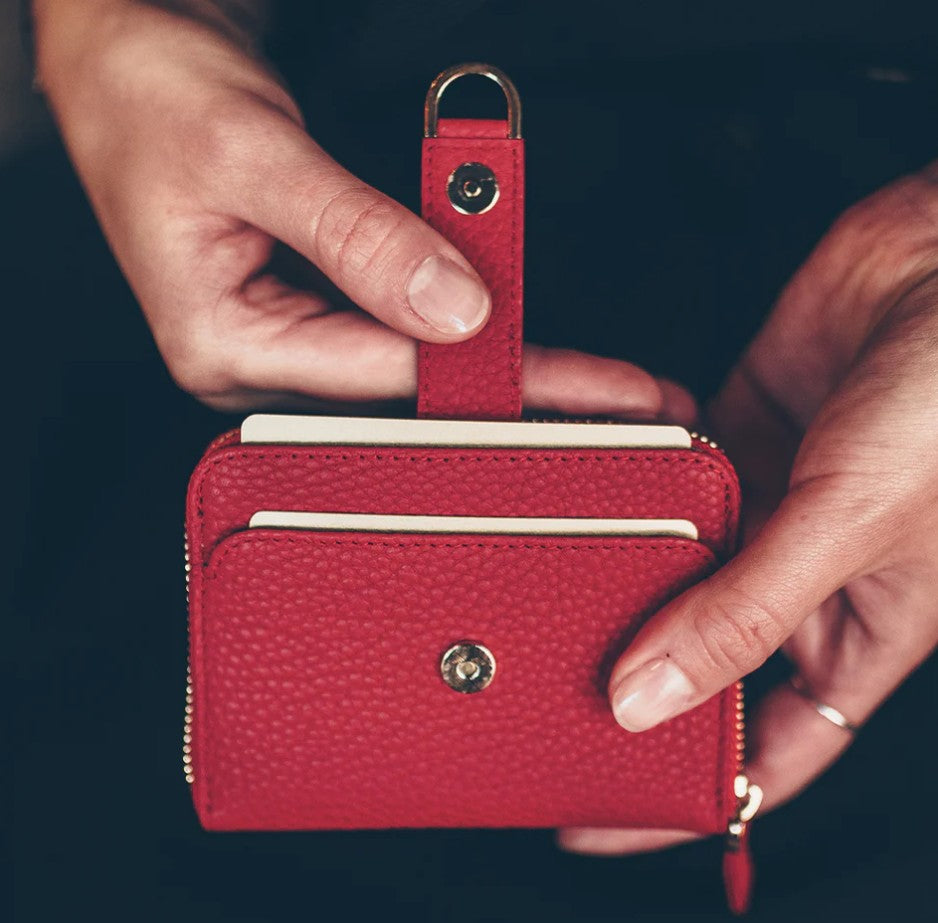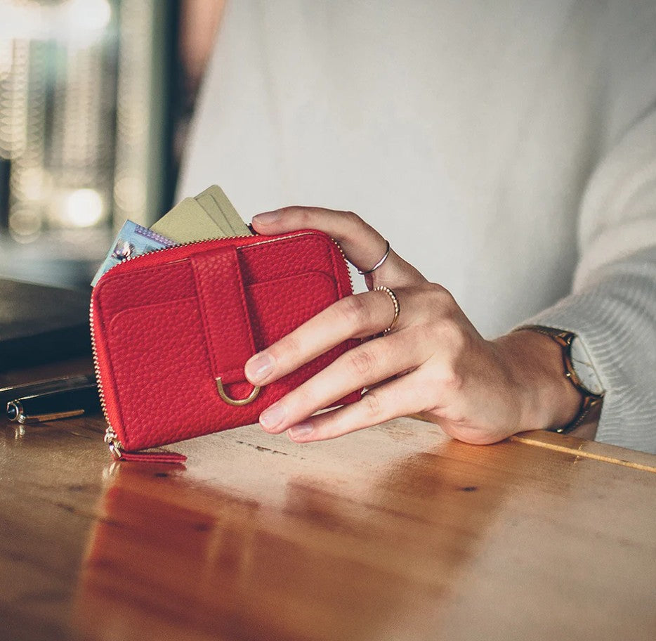 If you need to keep an array of cards, cash and small items with you but don’t want to carry a wallet the size of a hardback book, BELGRAVIA is for you. It’s a slim, minimalist marvel for women who don’t want to transfer selected items into a small wallet for an evening bag, and those who want to put their wallet in their pocket and go out without a bag. As well as clever front pockets, the zipped section of this RFID-protected wallet is full of possibilities. Folded banknotes of all sizes can sit either side of the central panel, as can receipts, coins, memory sticks, USB, a key or two, hair bobble, or even a small lipstick.